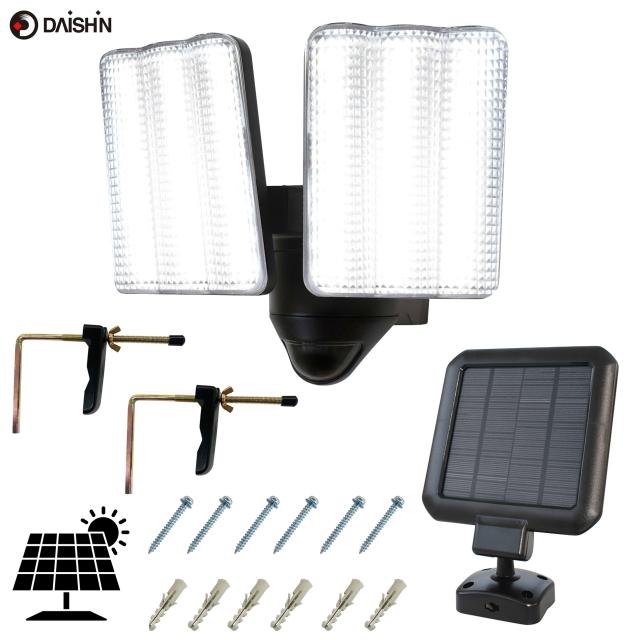 【 ソーラータイプ 屋外用 】 大進 センサーライト 屋外 用 人感 LED 2灯式 ソーラー ライト 屋外 人感センサーライト 強力 防犯ライト ガレージ 庭 玄関 灯 分離 型 クランプ 防雨 明るい 太陽光 取付金具 電源不要 人感センサー 長時間 物置 簡単 強力 物置 軒下 スポット