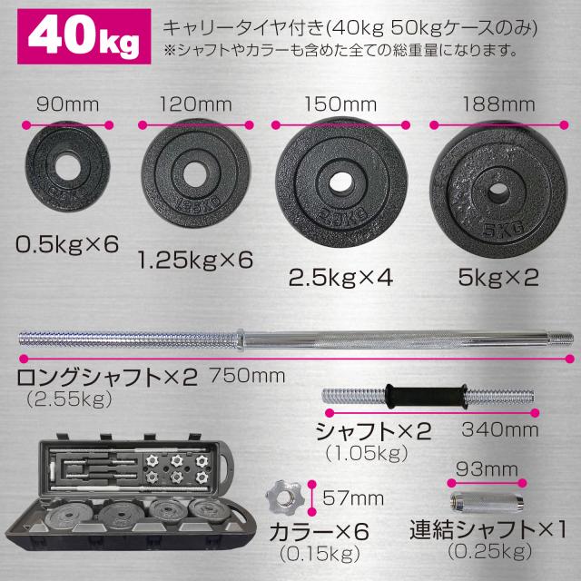 ダンベル 可変式 総重量 40kg セット 3way 可変式ダンベル バーベル シャフト プレート