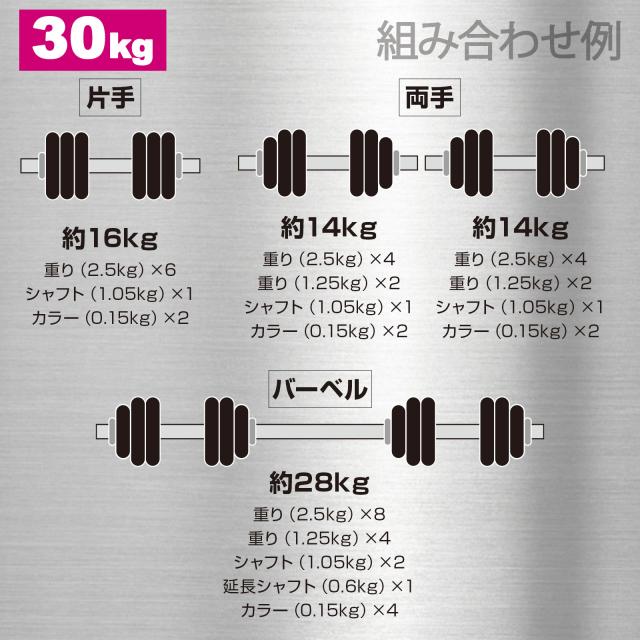 ダンベル 可変式 総重量 30kg セット 3way 可変式ダンベル バーベル シャフト プレート