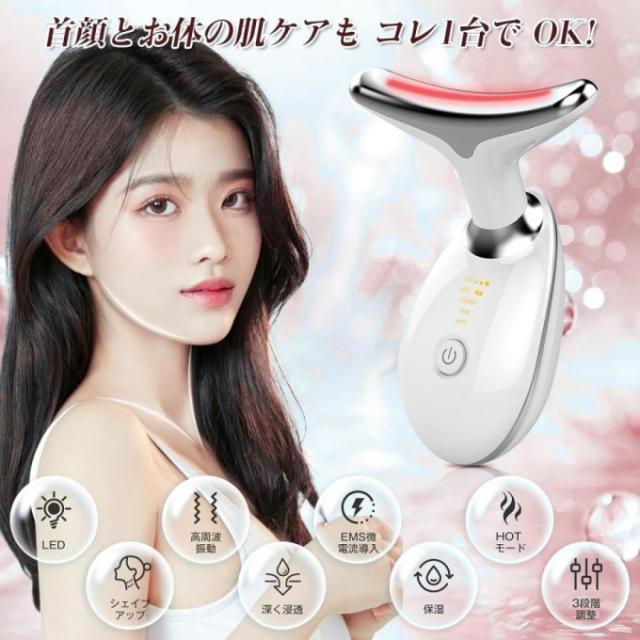 美顔器 ems 1台多役 リフトアップ効果 LED光エステ 首 顔 3in1 マッサージ マッサージ器 フェイスライン 引き締め かっさ 美肌 保湿 母の日 誕生日 プレゼント