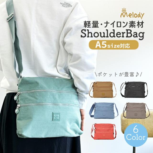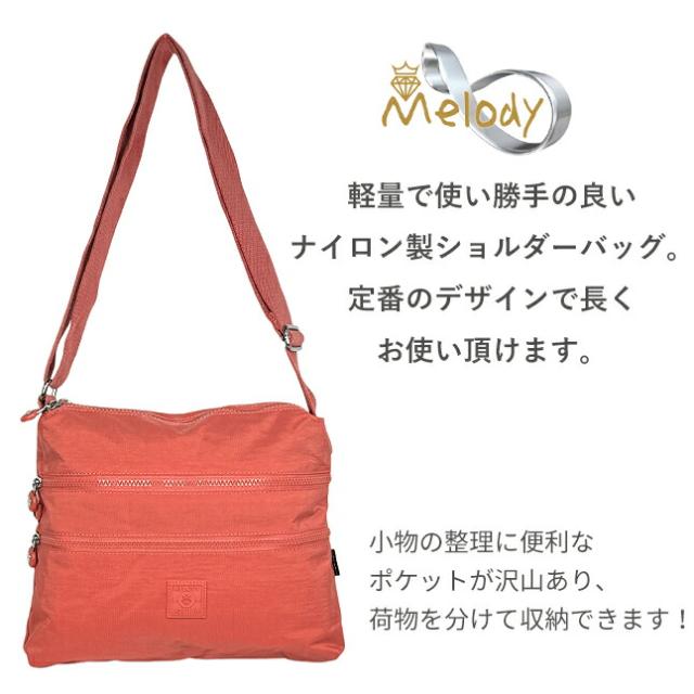 ショルダーバッグ レディース 斜めがけ 軽量 ny084 Melody メロディ ナイロンバッグ ナイロンショルダーバッグ 斜め掛け 肩掛け 小さめ 女性 大人 お母さん おばあちゃん 旅行 通勤 お買い物 人気 おしゃれ 軽い ブラック グレー カーキ ブルー グリーン サーモンピンク