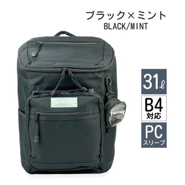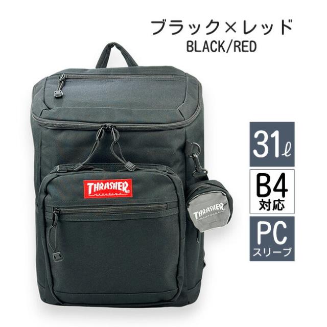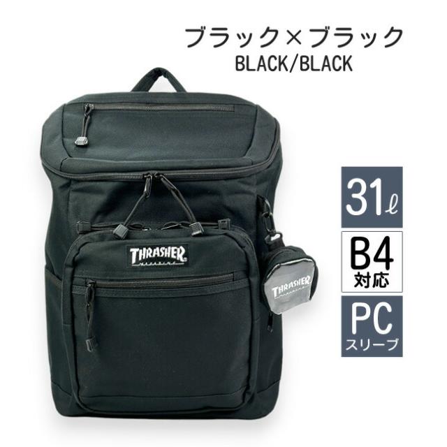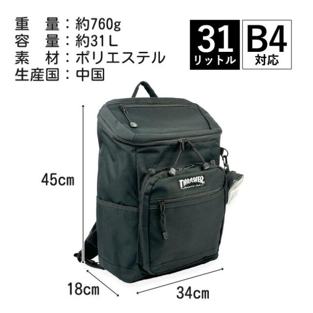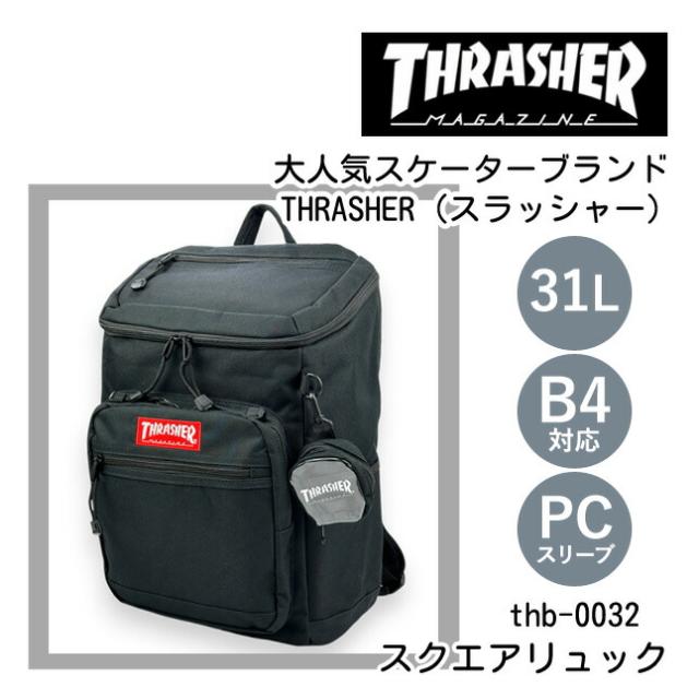 リュック 通学 大容量 男子 thb-0032 THRASHER スラッシャー カラーネーム スクエアリュック 31L ミニポーチ付き A4 B4 PC タブレット 通学リュック 部活 旅行 修学旅行 林間学校 合宿 かっこいい メンズ レディース 高校生 中学生 大学生 スケーターブランド ストリート系