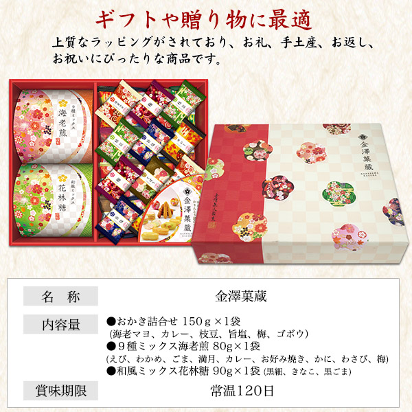 金澤兼六製菓 【金澤菓蔵】 おかき 花林糖 海老煎 詰合せ お歳暮 長寿祝 七五三 手土産 ご挨拶 内祝 御礼 御祝 御供 法事 菓子折り 全国配送 常温配送 贈答 お菓子 お返し 和菓子 おせんべい かりんとう 熨斗 御菓子 贈物 手土産 詰め合わせ
