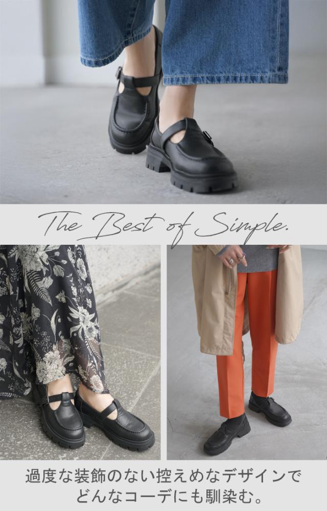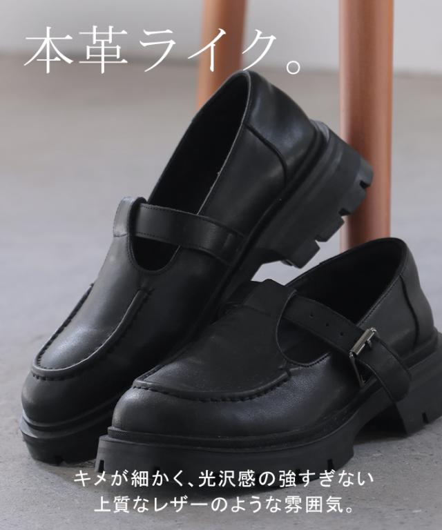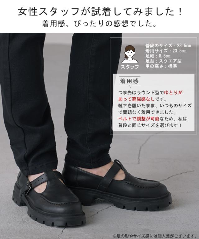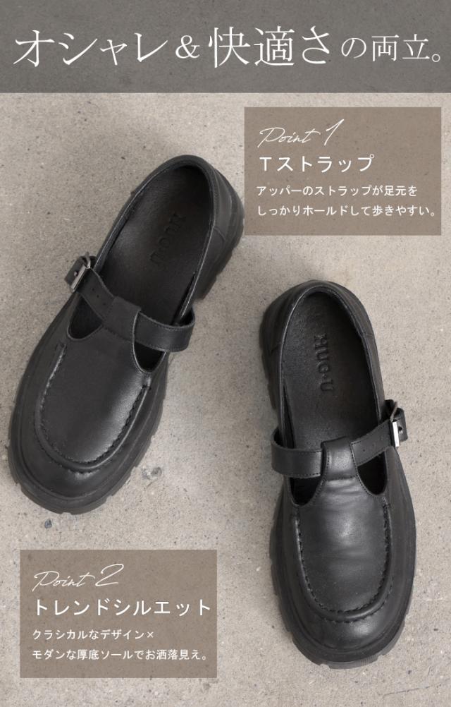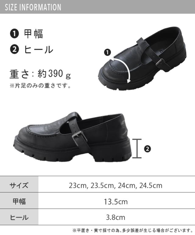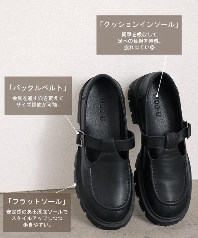 大きいサイズ有 23cm 〜 24.5cm ローファー 一部1月中旬入荷 メリージェーン 厚底 レディース パンプス シューズ 靴 疲れない 6cm フラット ボリュームソール トラックソール ストラップ ラウンドトゥ 調整可能 無地 くつ クツ きれいめ 黒 ブラック 春 夏 HUG.U