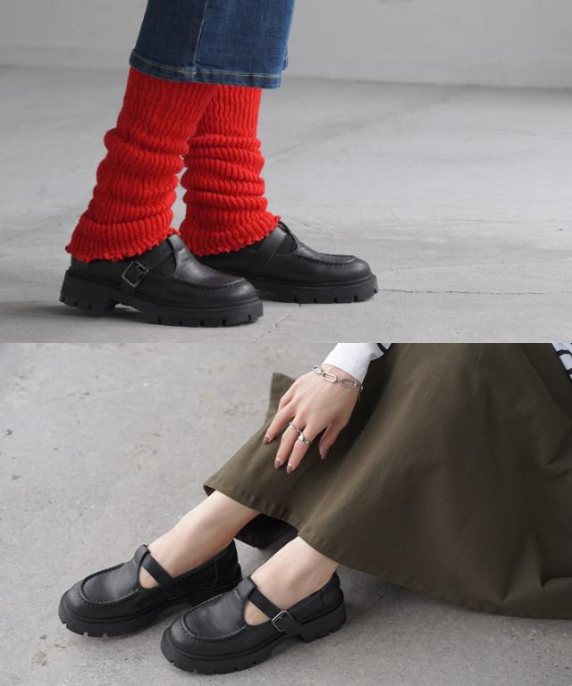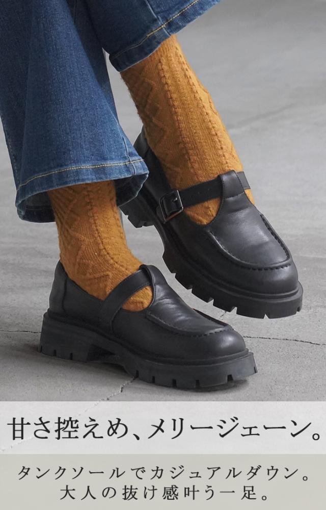 ローファーとメリージェーンのディテールを組み合わせたデザインが新鮮な一足。