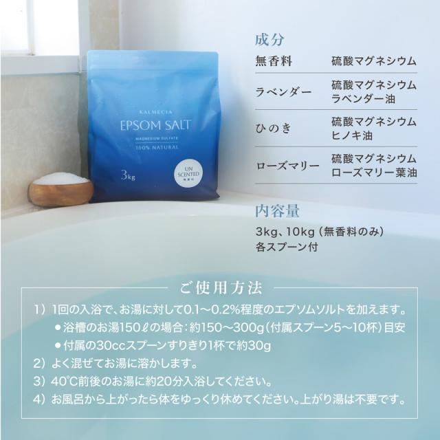 ※「エプソムソルト 3kg フレグランス付き(ラベンダー・ひのき・ローズマリー)」「エプソムソルト 3kg 無香料」は別ページで販売中