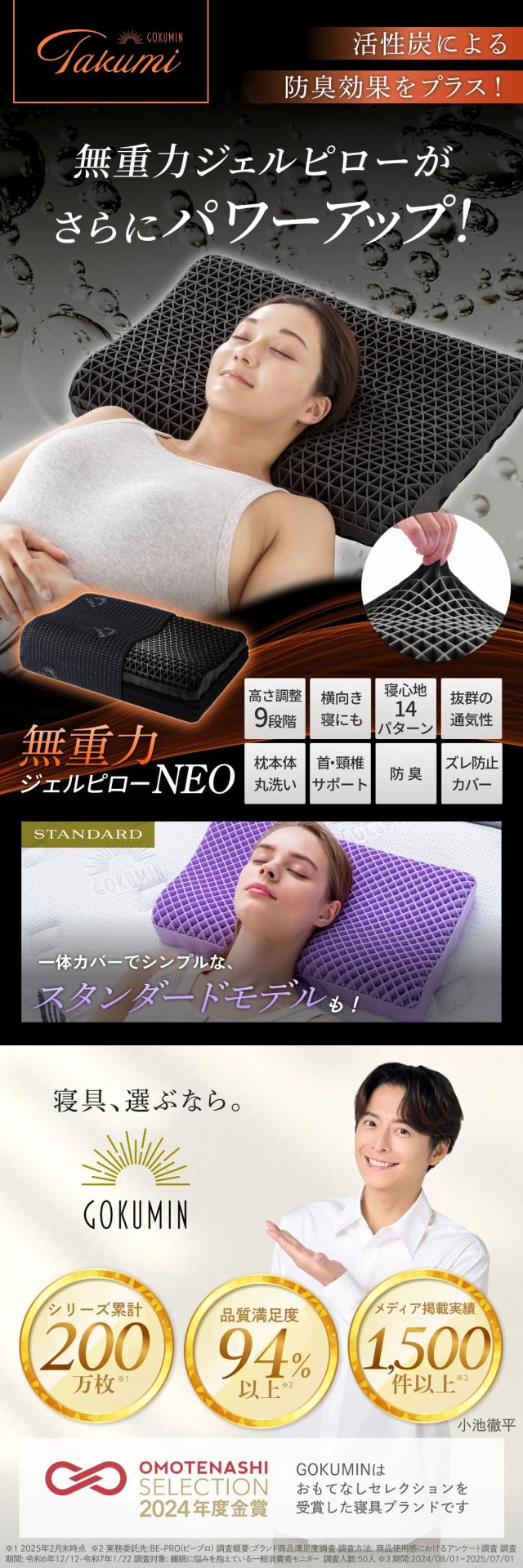 枕 無重力ジェルピロー NEO まくら GOKUMIN 無重力枕 ジェルクッション 寝返り ジェル枕 横向き寝 横向き 仰向き寝 仰向け 洗える枕 ストレートネック