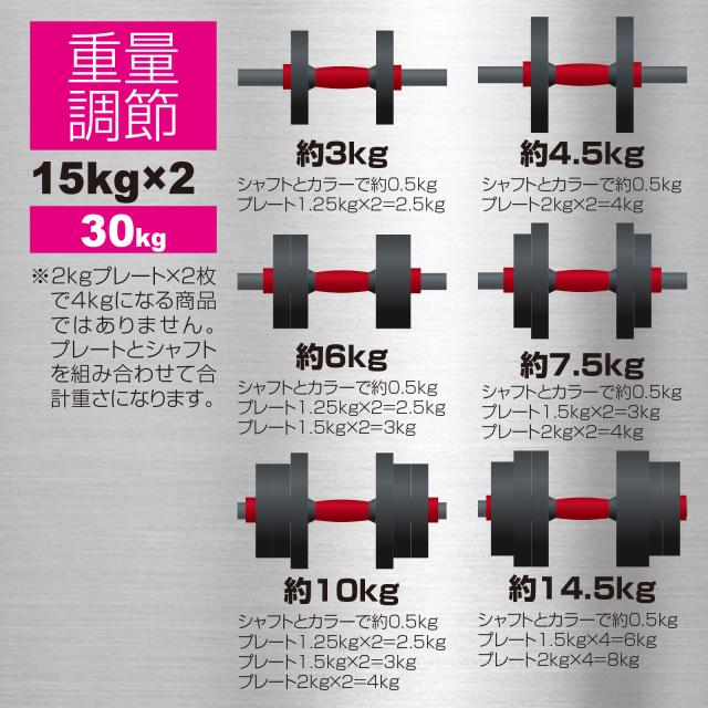 ダンベル 可変式 15kg 2個セット 30kg ダンベルセット ダンベルプレート バーベル