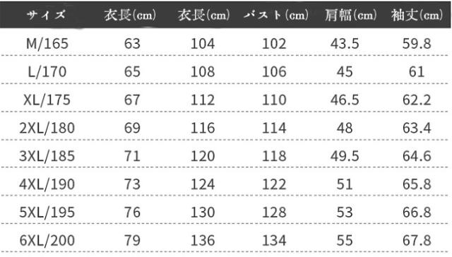 サイズ:M/L/XL/2XL/3XL/4XL/5XL/6XL