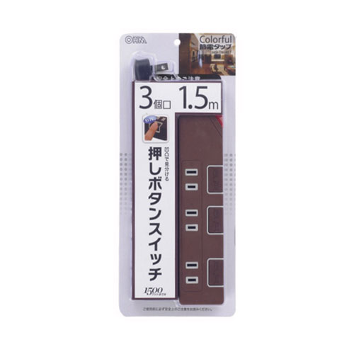 オーム HS-T1148T(00-1148) 押しボタンスイッチ付節電タップ(3個口 1.5m ブラウン)OHM[HST1148T001148] 返品種別A