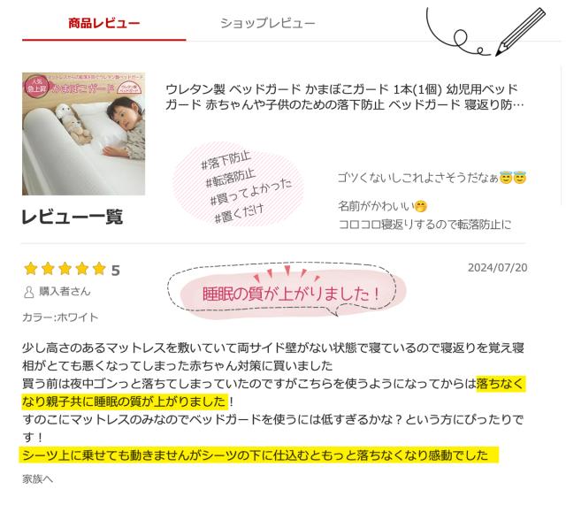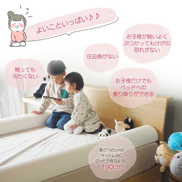 【幼児にも安心】マットレスからの転落を防ぐ、ウレタン製ベッドガード ベッドフェンス 簡単セットアップ
