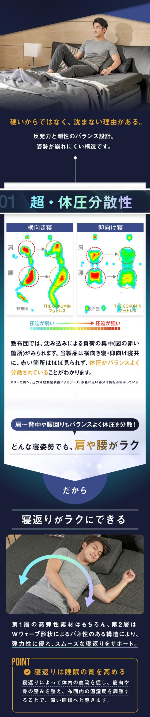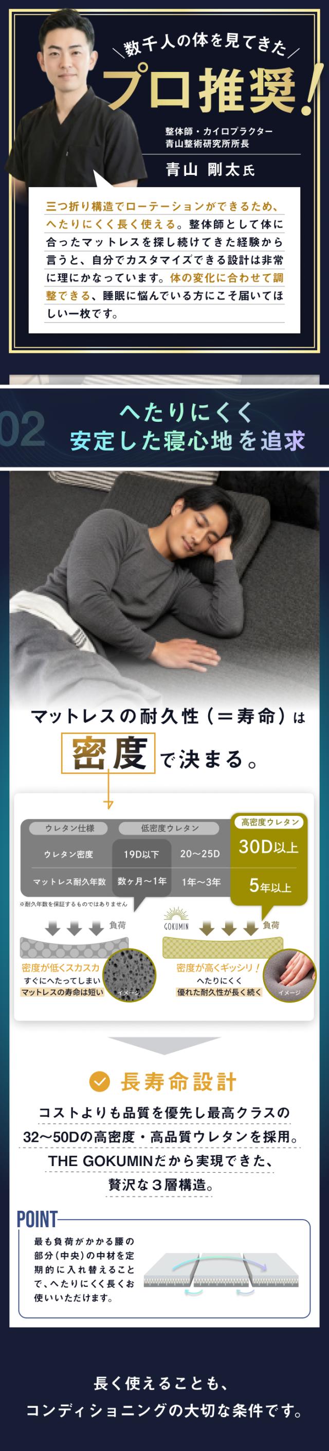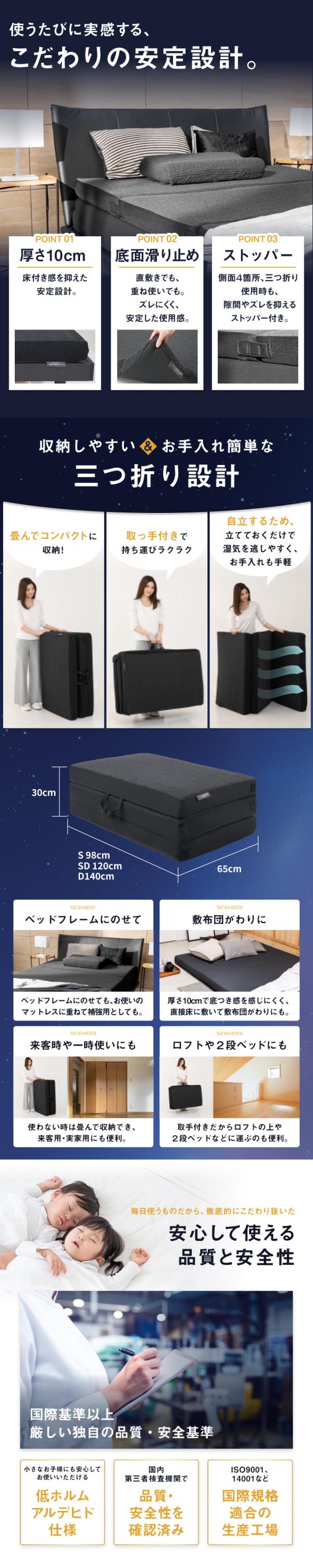 三つ折り シングル 肩 腰 負担軽減 THE GOKUMIN マットレス 3レイヤーゾーニングマットレス 極厚10cm 三つ折りマットレス 折りたたみ へたりにくい 高反発 硬め