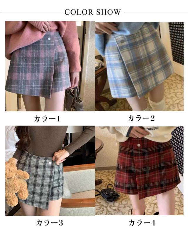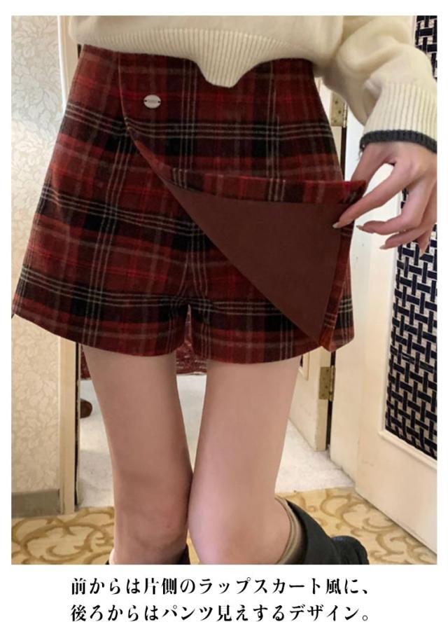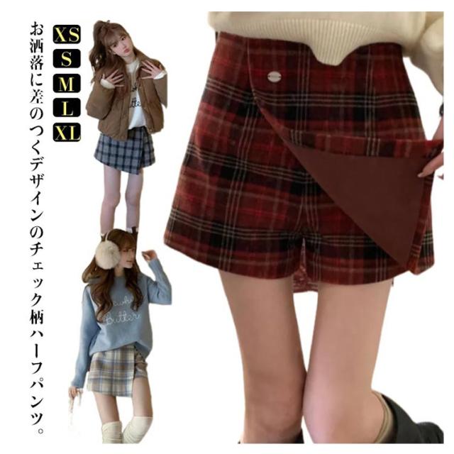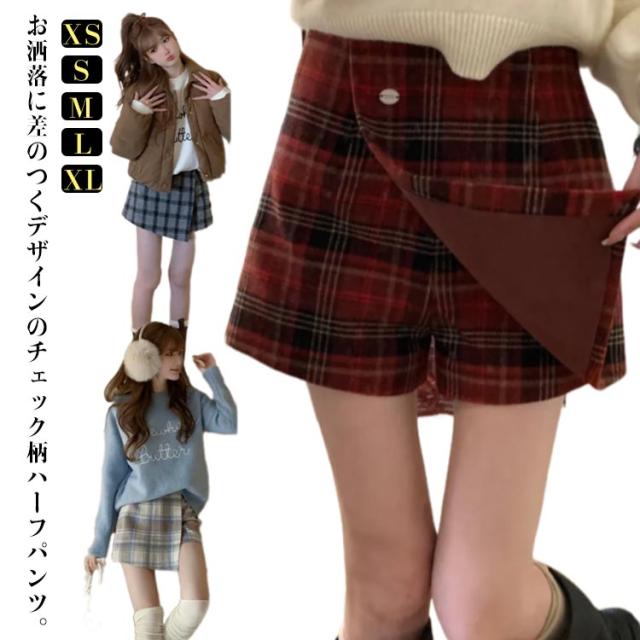 ハーフパンツ チェック柄 秋冬 スカパン ショーパン パンツ レディース ショート丈 チェック柄スカート風ハーフパンツ キュロット ボトムス ボトムス ショート丈 スカート ミニスカート きれいめ ハイウエスト スカッツ 送料無料
