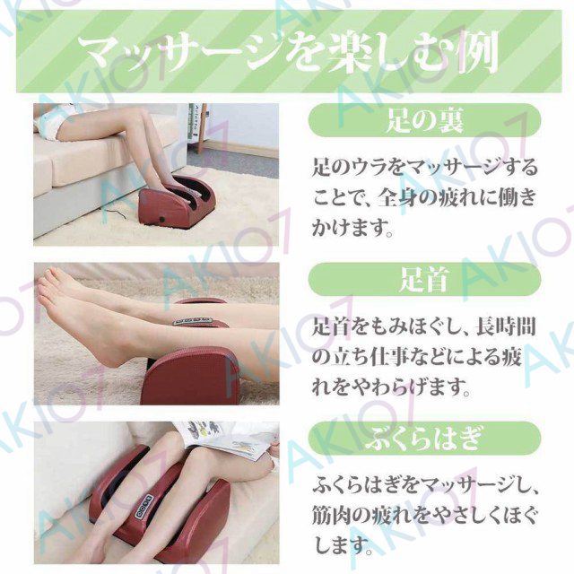 物理理念に従って筋肉を深くマッサージして経穴を刺激して体の血液の流れの促進、循環活かします。修復の能力を高め、コラーゲンの更新を加速し、リラックススしていい気分になれ睡眠改善という効果が行えます。足裏だけでなく、ふくらはぎにもマッサージが可能です。