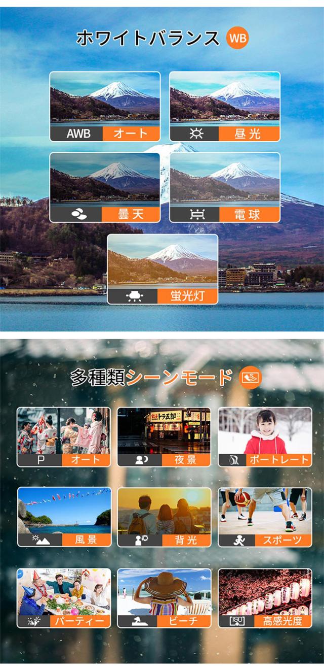 タイムラプス/ループ録画/セルフタイマー /連写など多様な撮影モードが付き