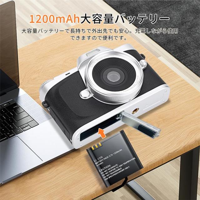 1200mAh大容量バッテリーなので、120分の連続撮影が可能、さらに、動画録画の場合にも90分連続撮影ができますので、外でも電池キレを気にせず撮影を楽しむことができます。
