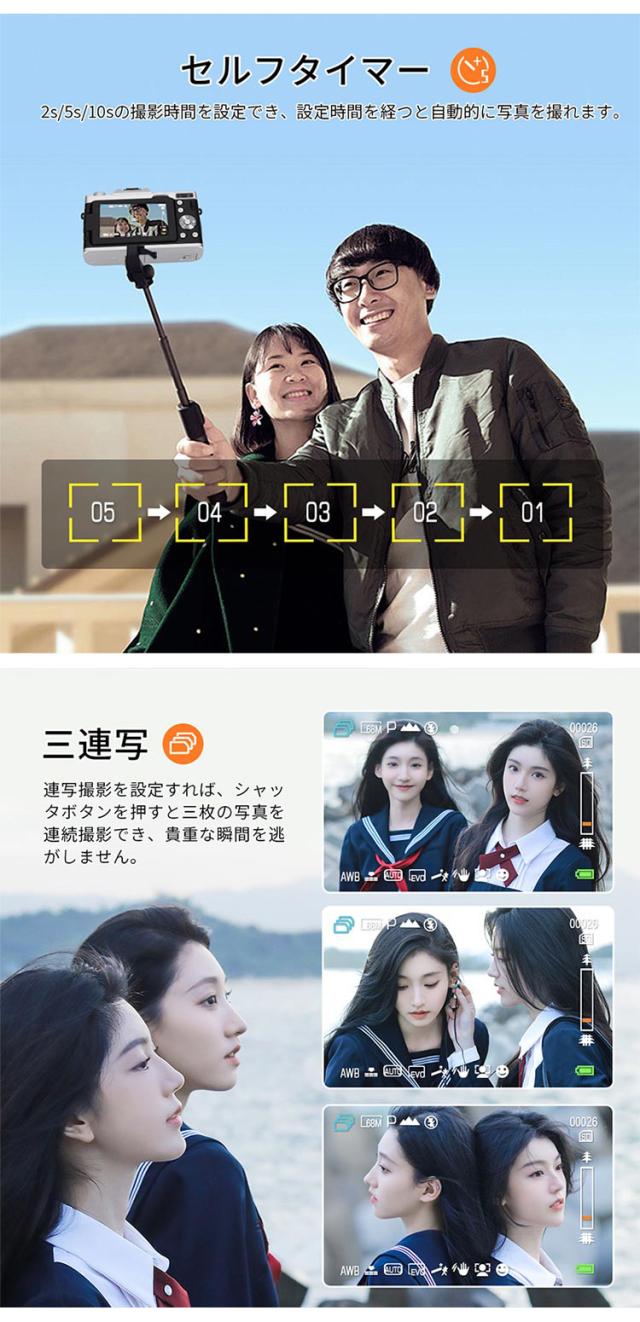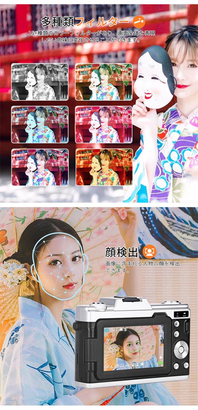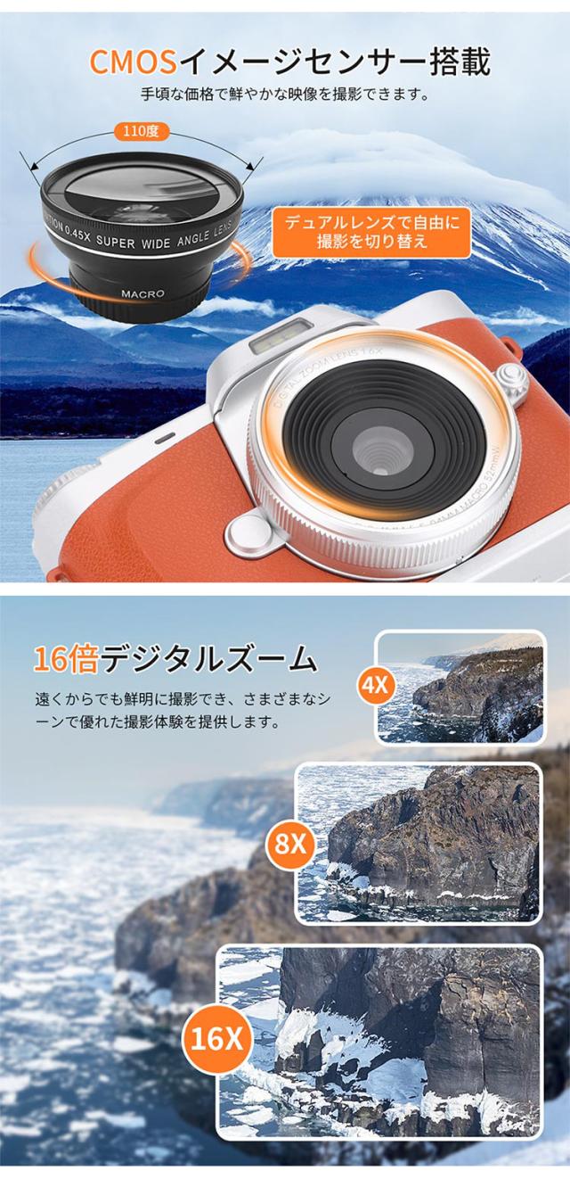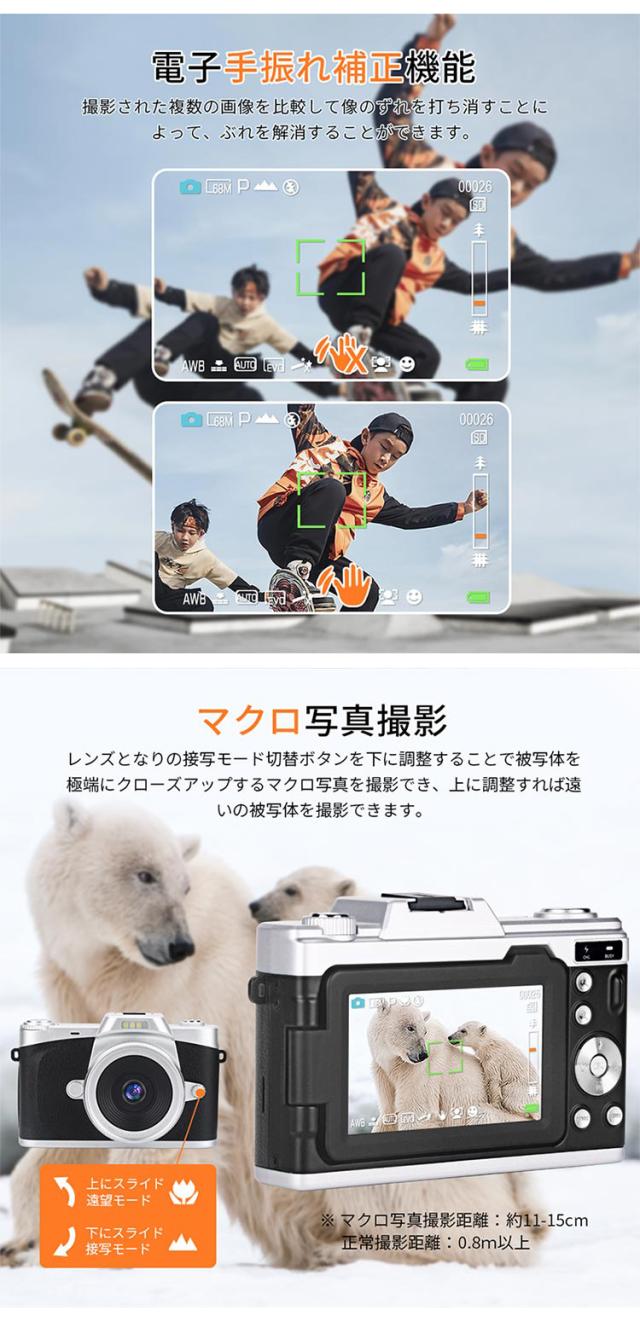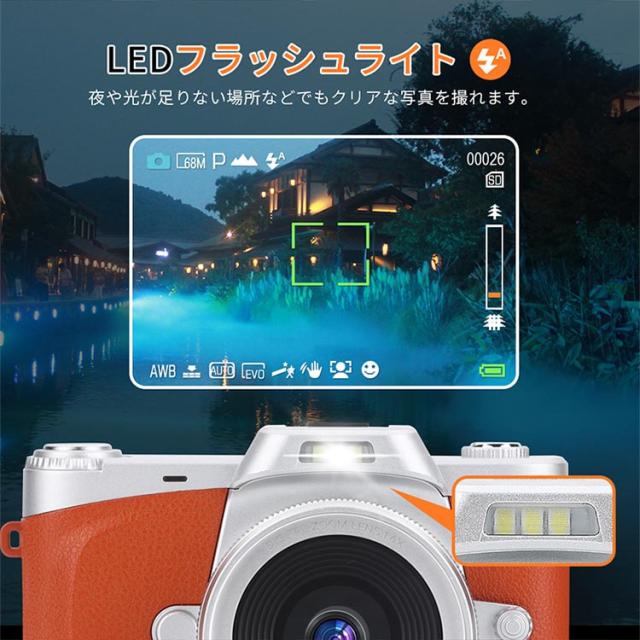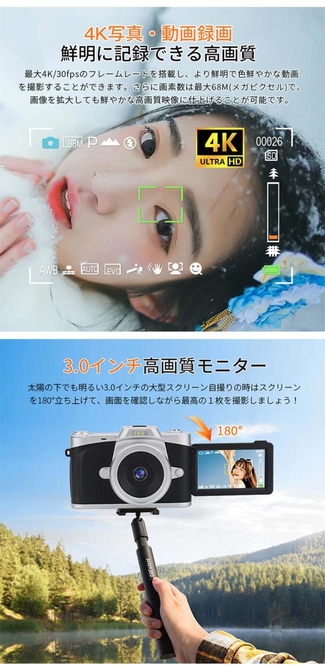 デジタルカメラ 4K 6800万画素 CMOSセンサー 軽量 WIFI転送機能 カメラ 3インチ 16倍デジタルズーム 内蔵フラッシュ USB充電 大容量バッテリー プレゼント 2024新品 誕生日