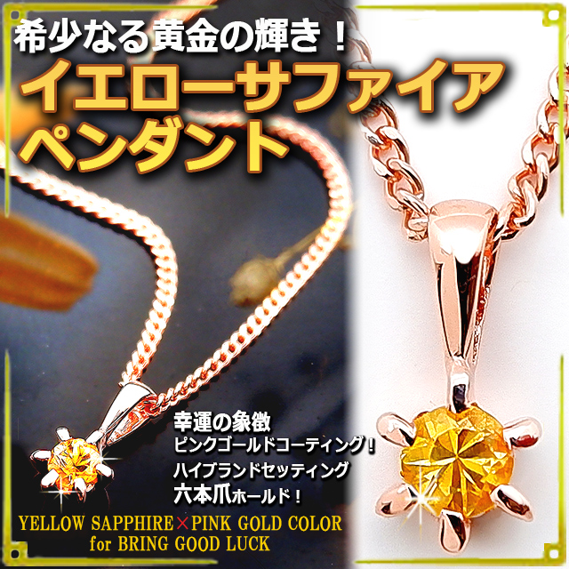 イエローサファイア 希少 幸運 金財運 幸せ ピンクゴールド ネックレス (イエローサファイアペンダント ピンクゴールドカラーフォームVer.)