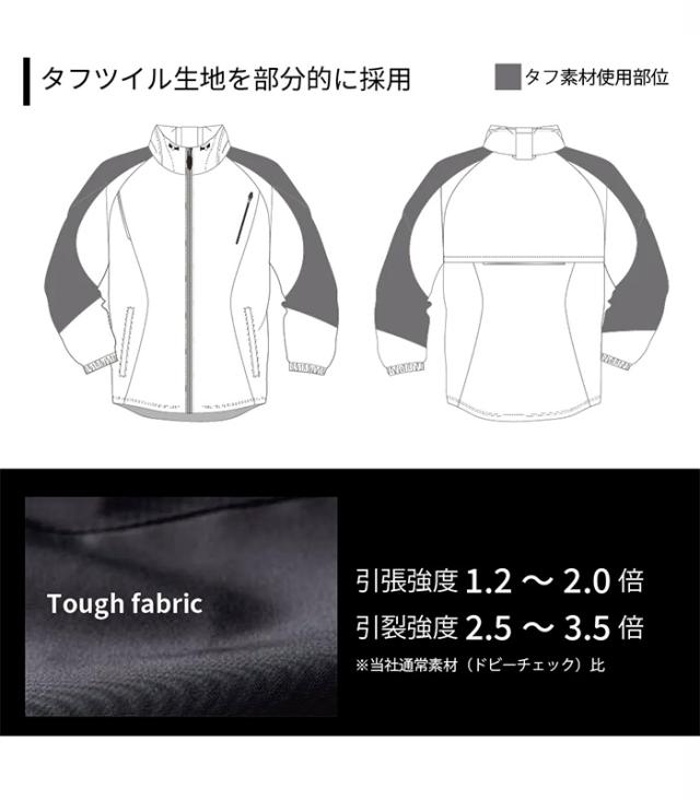 ※当社通常素材比)を部分的に採用したウインドブレーカー。
