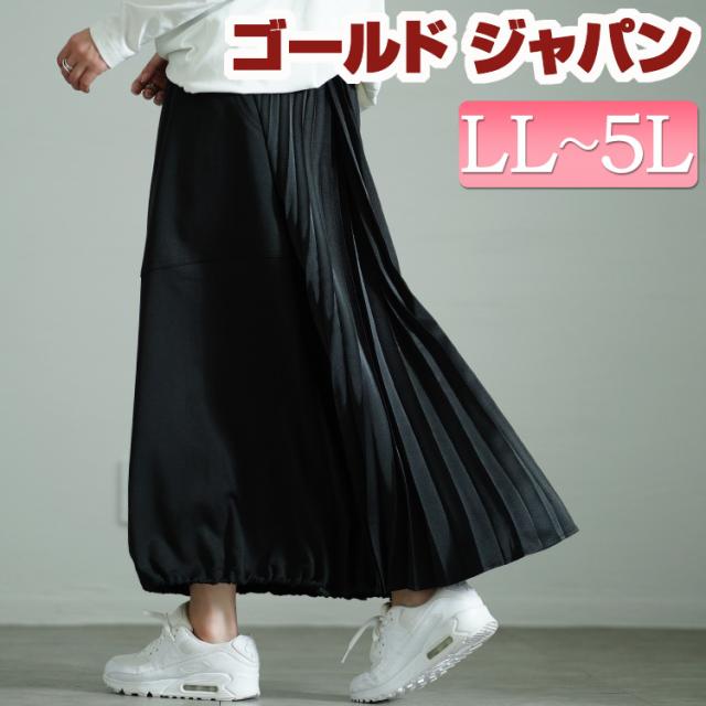 春新作 大きいサイズ レディース ボトムス スカート プリーツ切り替えバルーンスカート ロングスカート プリーツスカート ロング プリーツ バルーン 切り替え ドロスト ポケット ウエストゴム ストレッチ 秋服 冬服 春服 夏服 LL 2L 3L 4L 5L ブラック 黒 ゴールドジャパン