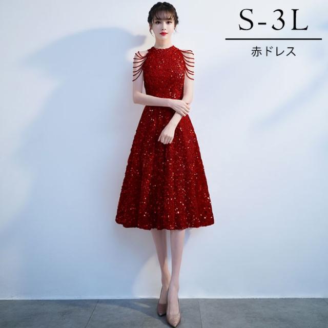 ドレス 大人 ピアノ 発表会 キラキラ ミモレ丈ドレス 演奏会 演奏会用ドレス ピアノ発表会 ミモレ丈 結婚式 高校生 パーティードレス 大きいサイズ 母親 コンクール イブニングドレス 演奏会ドレス 赤 大きいサイズドレス de044n1n1m5