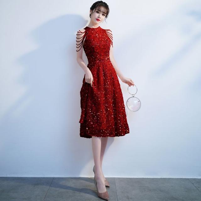 ドレス 大人 ピアノ 発表会 キラキラ ミモレ丈ドレス 演奏会 演奏会用ドレス ピアノ発表会 ミモレ丈 結婚式 高校生 パーティードレス 大きいサイズ 母親 コンクール イブニングドレス 演奏会ドレス 赤 大きいサイズドレス