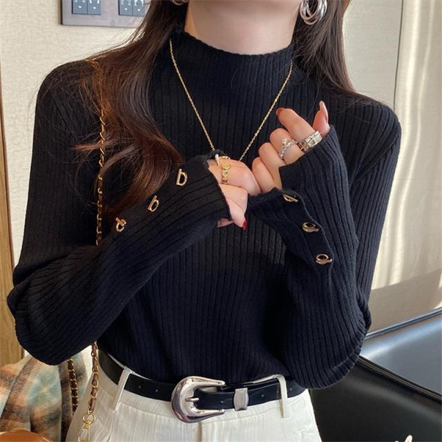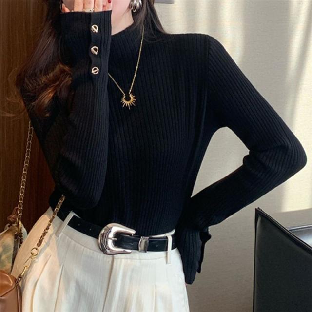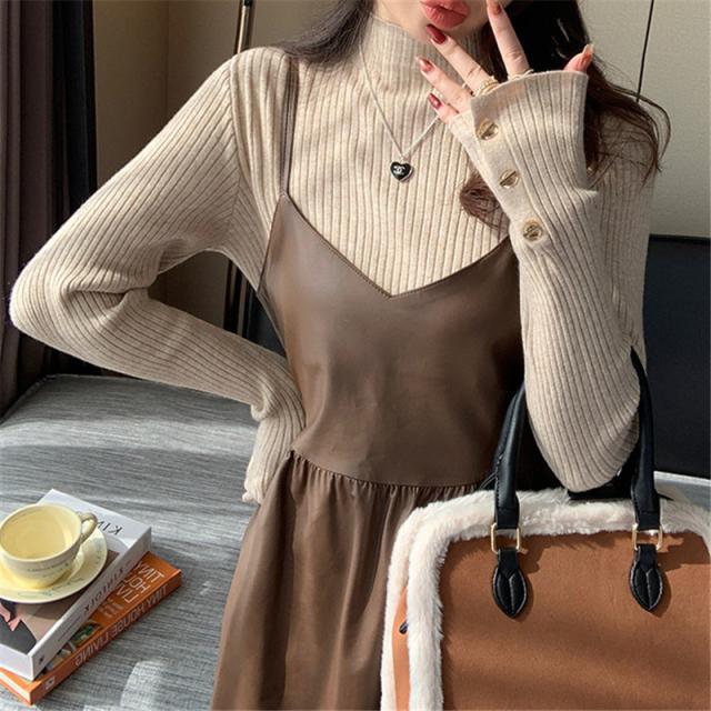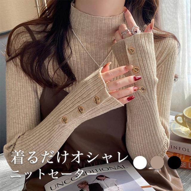 ニットセーター レディース ニットカットソー 長袖 インナー リブハイネック タートルネック トップス セーター リブ ハイネック