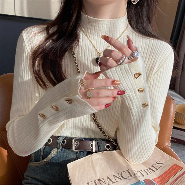 ◆綺麗めな印象を与える大人ハイネックニットセーター。