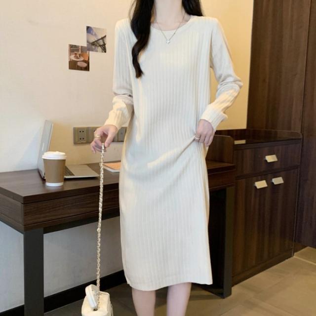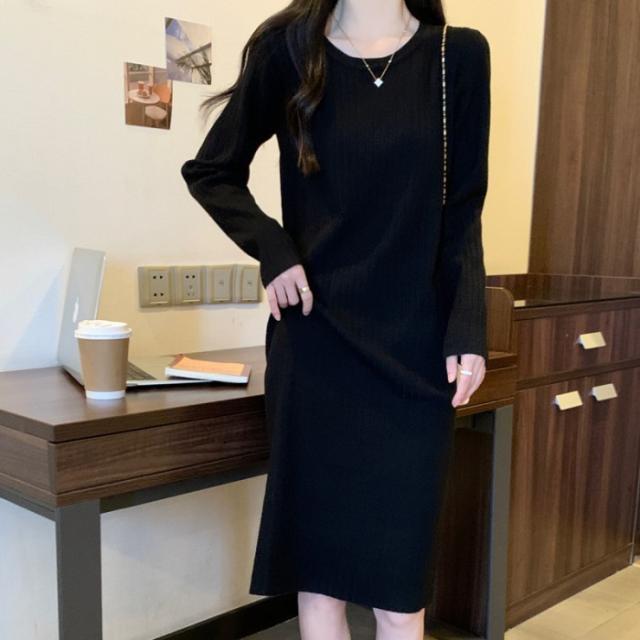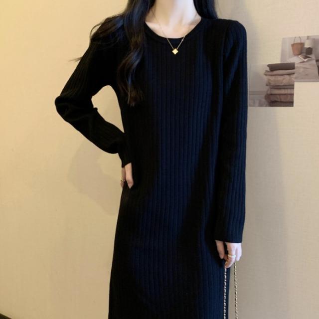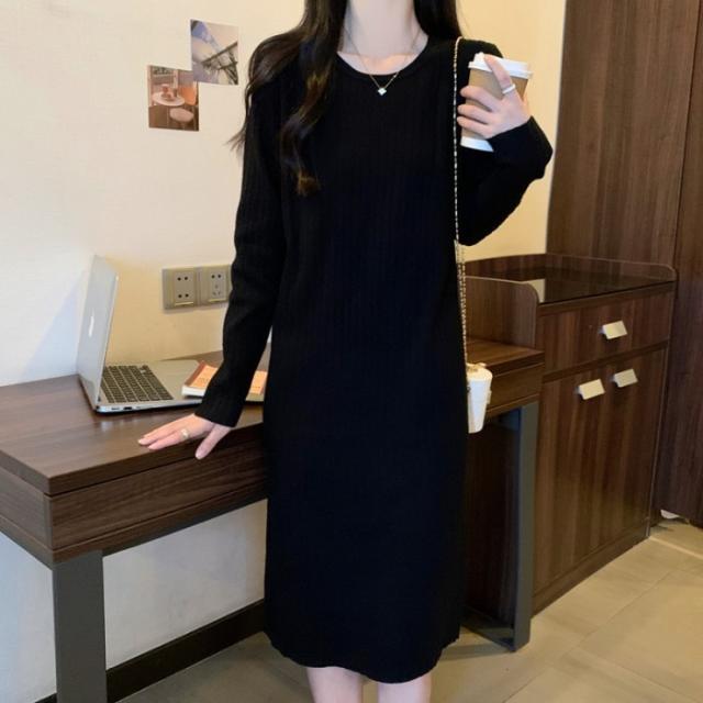 ニットワンピース 秋冬 ロングワンピース インナーニット セーター レディース 秋 冬 春 ロングニット 長袖 ゆったり 肩落ち かわいい カジュアル 体型カバー 大きいサイズ ブラック ベージュ L 2L 3L 4L 5L