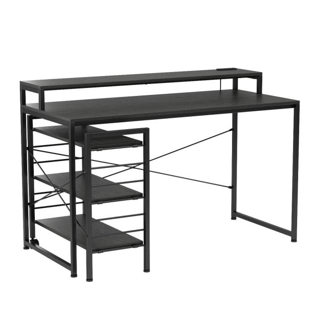 ◆商品名:アイリスプラザ パソコンデスク ラック付き PC/オフ ィスデスク 机 省スペース おしゃれ 収納 ワークデスク 書斎 学習机 ブラック 幅120?