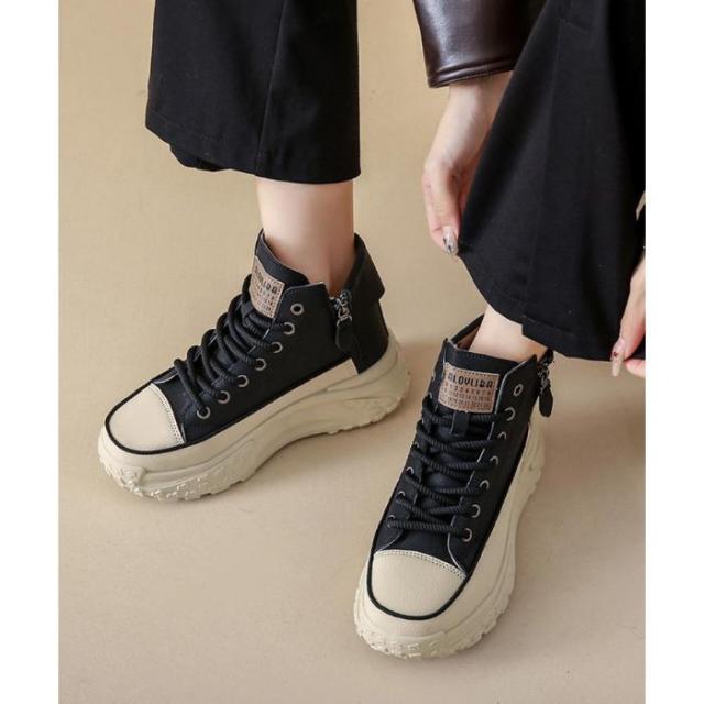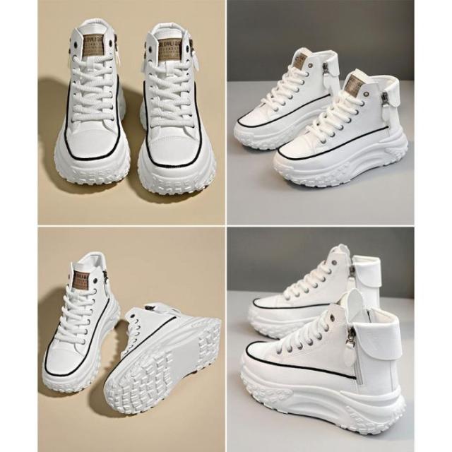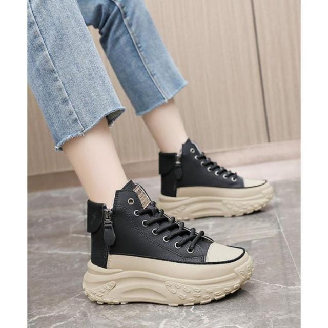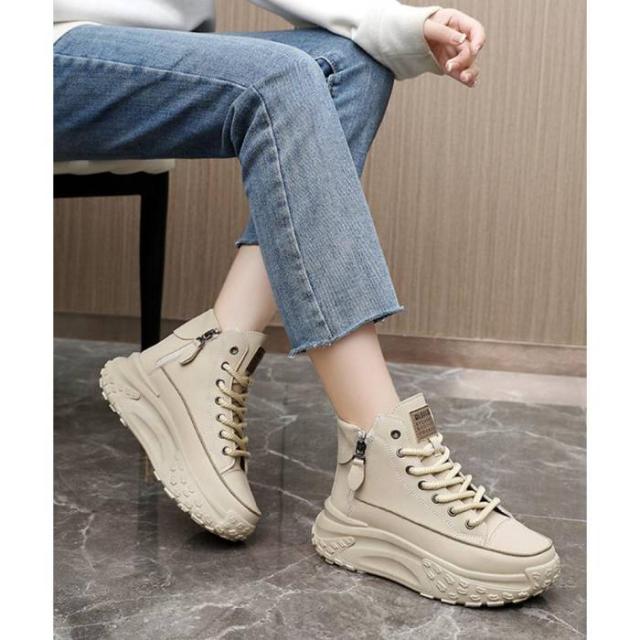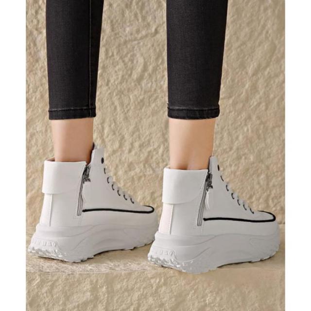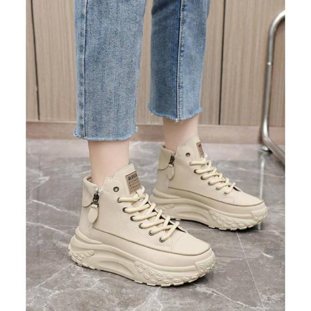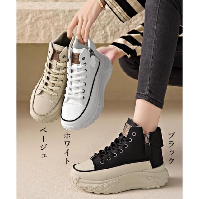 韓国 レースアップスニーカー 歩きやすい おしゃれ 美脚脚長 疲れないシューズ ボリュームソール 厚底スニーカー白 四季