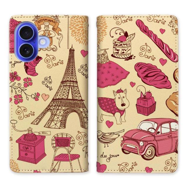 iPhone16 アイフォン16 ベルトなし 手帳型スマホケース スタンド 【Parisデザイン】マグネットでピタッと閉じる スマホケース スマホカバー 手帳ケース 手帳カバー