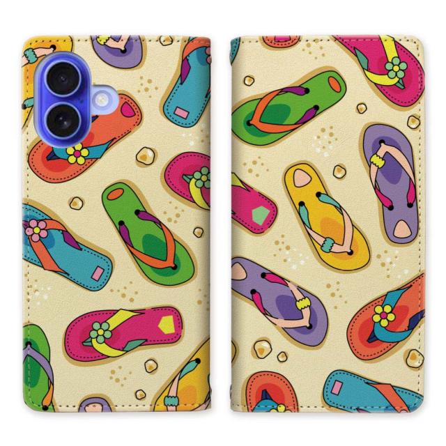iPhone16 アイフォン16 ベルトなし スタンド機能 - 海辺のサンダルデザイン - 手帳型 スマホケース 手帳ケース 手帳カバー スマホカバー マグネットでピタッと閉じる
