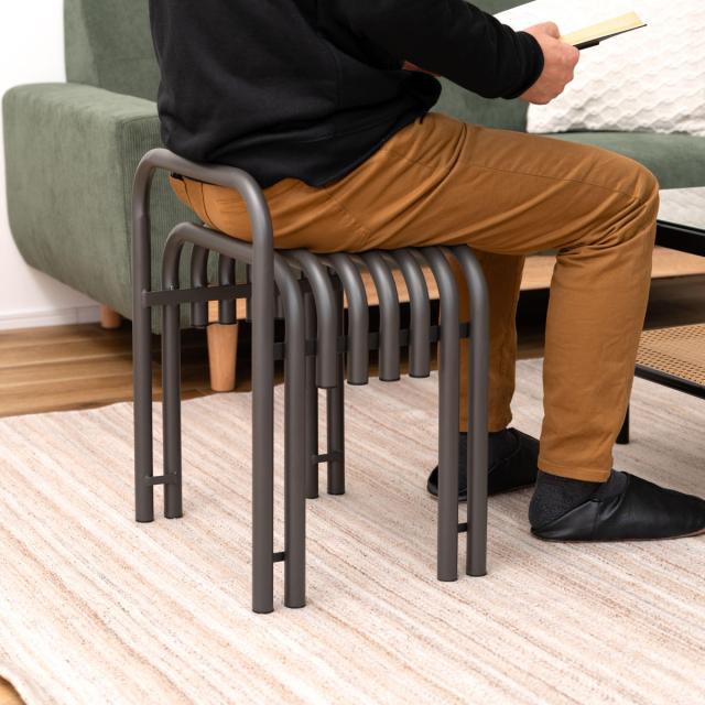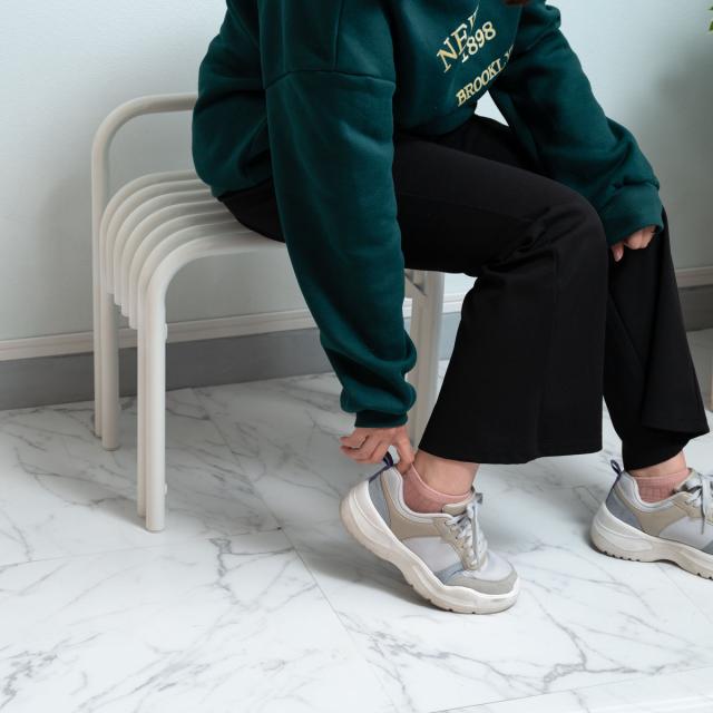 脚部は2本ずつになっているので、安定感のある座り心地です。玄関ではスツールに座って靴を脱ぎ履きすれば、足腰に負担をかけずに済みます。