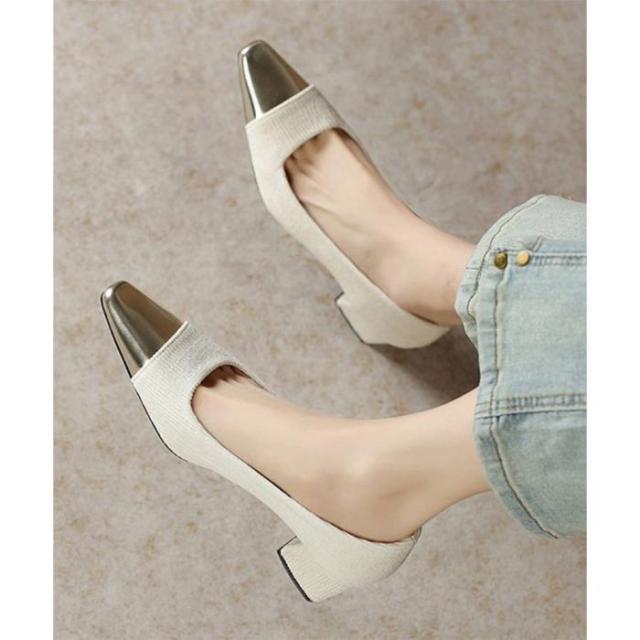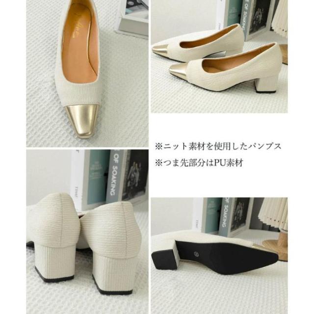 つま先切り替えパンプス配色ニットパンプス