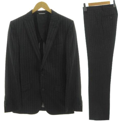 【中古】KENJI ITO コムサコレクション スーツ ジャケット ピークドラペル パンツ ストライプ 黒 シルバー L