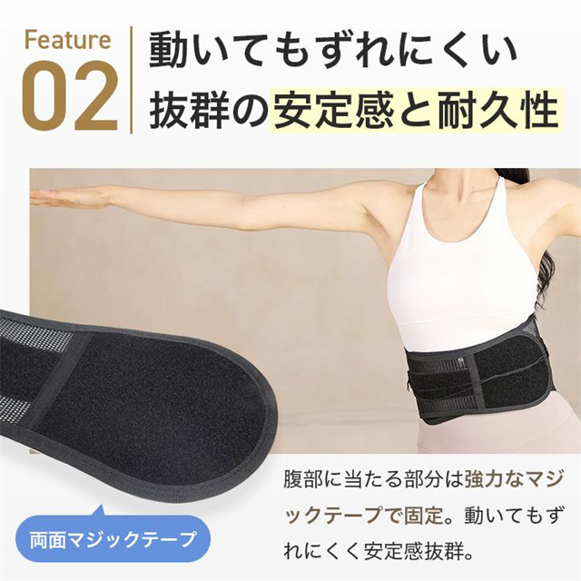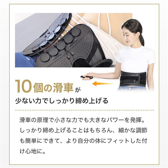 ひもを引っ張るだけで腰をがっちり固定!