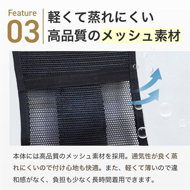 長時間着けていても蒸れずにストレスにならない、メッシュ構造。