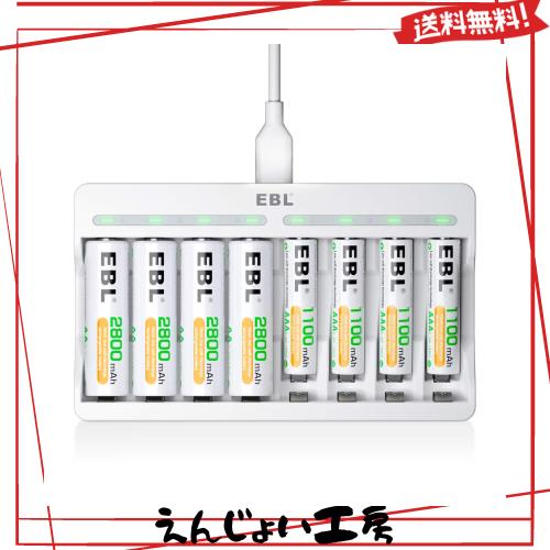 EBL 充電池充電器セット 急速充電器+単3電池(2800mAh*4)+単4電池(1100mAh*4)パック LED搭載充電器 単4電池 充電式 充電器セット 単三