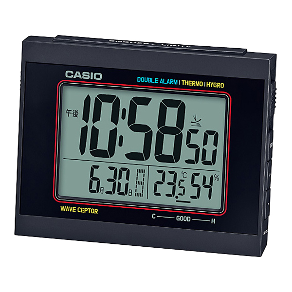 温度・湿度計付きの電波目覚ましクロックです。止めてもまた鳴る便利なスヌーズ機能を搭載。カシオらしい、クラシカルなデザインです。