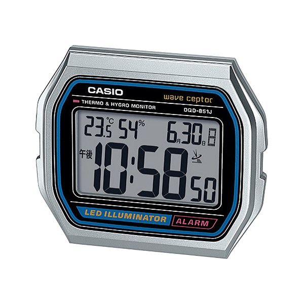 カシオ デジタルウオッチモチーフ 電波 目覚まし時計 DQD-851J-8JF 置時計 温湿度計つき シルバー