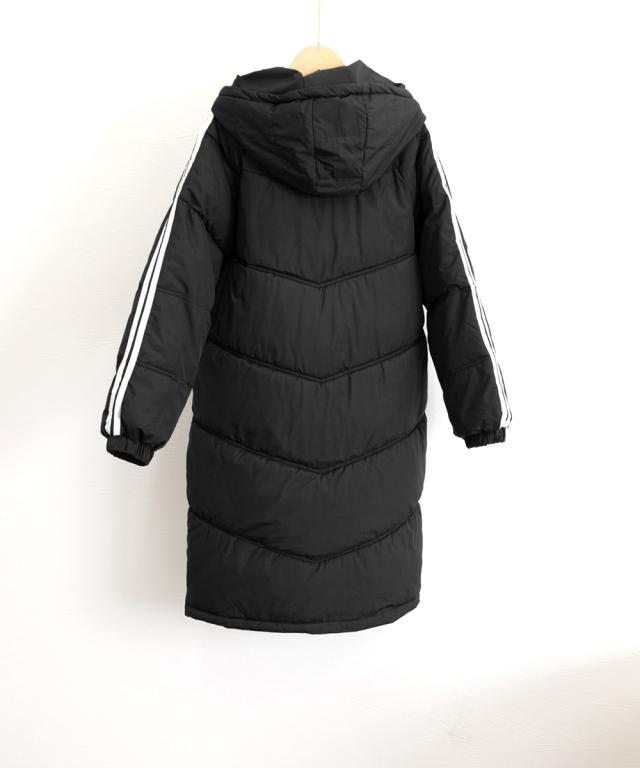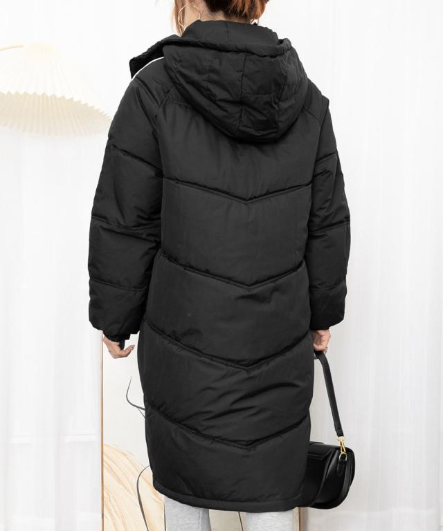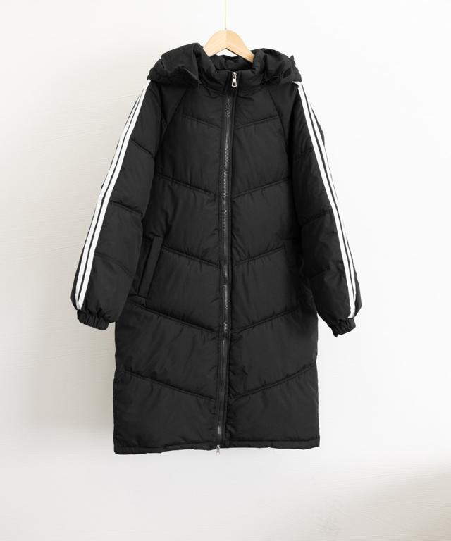 袖のラインデザインが特徴的で、シンプルかつおしゃれなレディースフェイクダウンコート