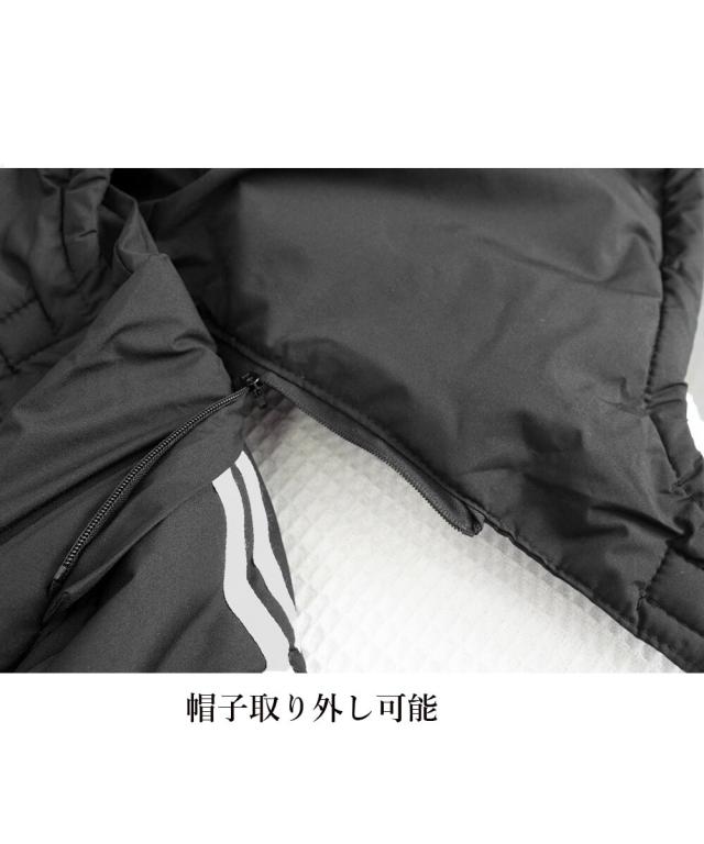 フード付きで風の強い日でも暖かく、被ると小顔見せもできる