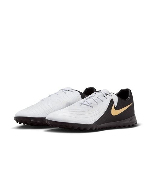 ナイキ ファントム GX II アカテ゛ミー TF TF ローカット サッカーシューズ プレーをレベルアップさせたい人に最適。 ファントム GX 2 アカデミーは、オーガナイザー、アシスター、フィニッシャーなど、どんなポジションのプレーヤーでもゴール前のベストポジションに運んでくれるスパイク。 あとは、もうあなた次第。 得点につながるプレーを追求して、NikeSkinでキックゾーンをカバー。Nike Cyclone 360トラクションが、これまでにない敏捷性を実現します。 強化されたボールタッチ NikeSkinのタッチゾーンを以前よりも拡大。 ボールを皮膚感覚で捉え、濡れた状態でも乾いた状態でもより良いドリブルやパスのボールコントロールを実現。 シューズの親指側からシューレースを越えて小指側までのキックゾーンをカバーし、クリーンなボールさばきを可能に。 スピードを引き出すトラクション Nike Cyclone 360トラクションパターンにより、切り込むときの敏捷性を高め、回転トラクションを軽減することで、素早く自信あふれる動きを実現。試合の激しさが増してもしっかりと安定感をキープし、スピードのあるカットインが可能。 快適なフィット感 柔らかいアッパーが、キックオフから試合終了の瞬間まで快適さをキープ。 More Details 短い人工芝のフィールドでの使用に最適 クッション性のあるインソール\n