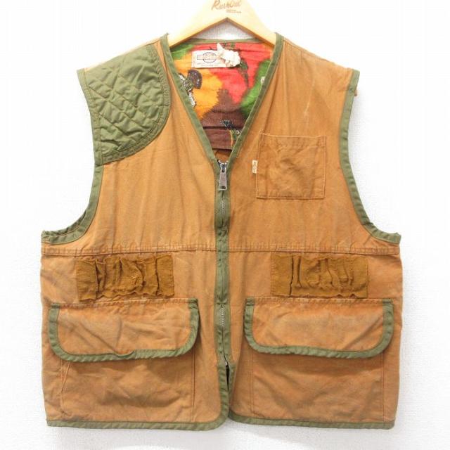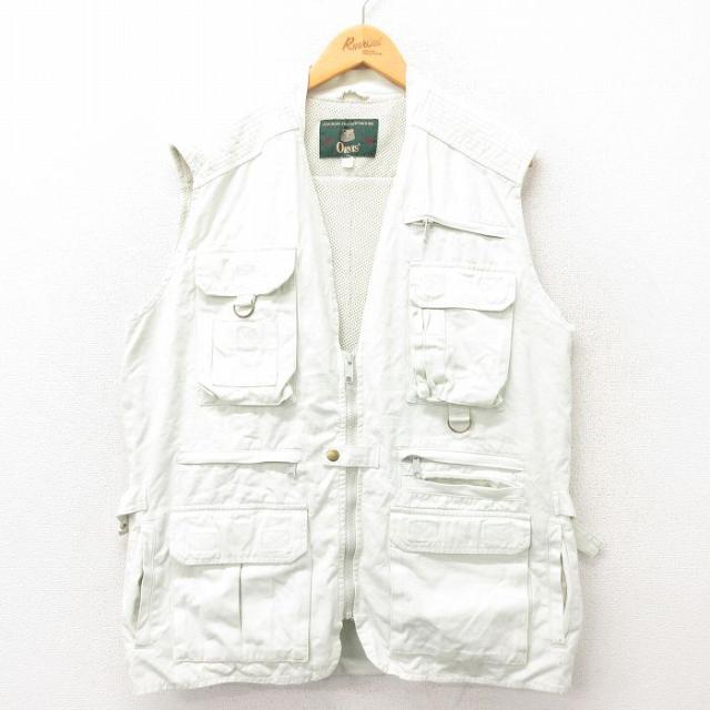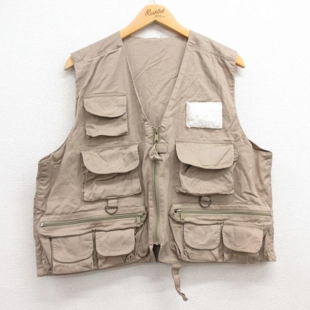 古着 フィッシング ベスト メンズ コットン 濃ベージュ カーキ Lサイズ 中古 アウター 中古 古着