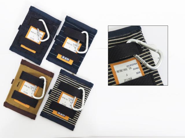 ベルトに通せるように、裏側にループを設けています。また、付属するカラビナで吊り下げられるように、