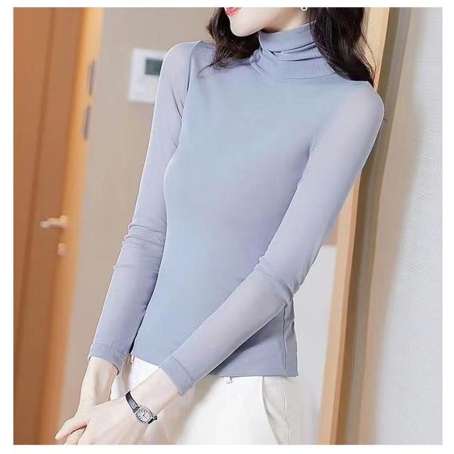 裏起毛 カットソー シースルー ブラウス ハイネック タートルネック シースルー トップス 裏フリース インナー 長袖 シャツ 立ち襟 レディース UV対策 紫外線対策 フォーマル トップス チュール 無地 カットソー 大人 S M L XL 2XL