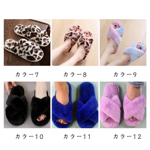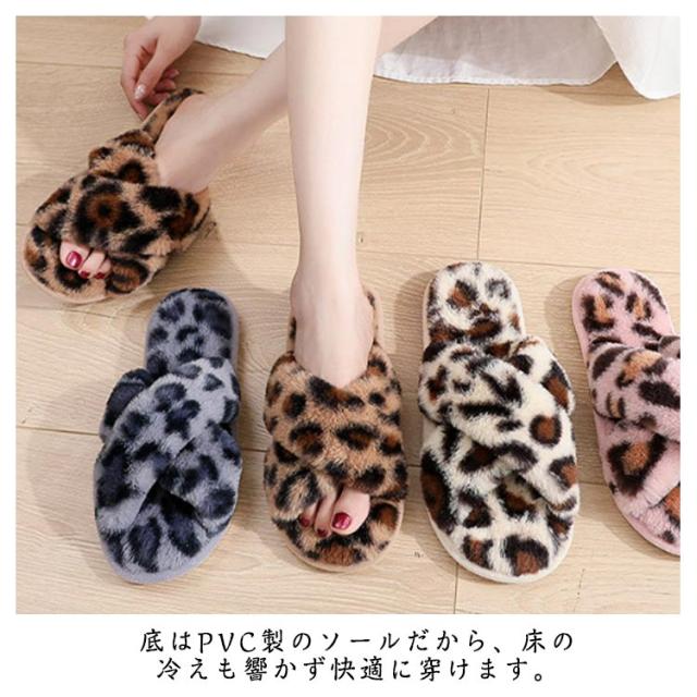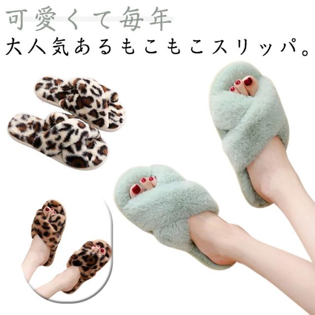 ルームシューズ もこもこ レディース スリッパ 無地 ふわふわ ファースリッパ ファーシューズ 室内履き ヒョウ柄 フェイクファー 軽量 滑りにくい もこもこ プレゼント 女性用