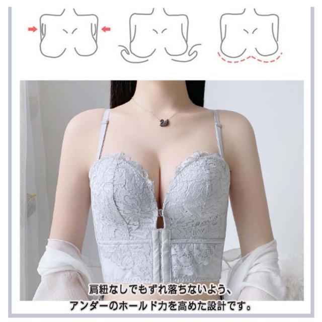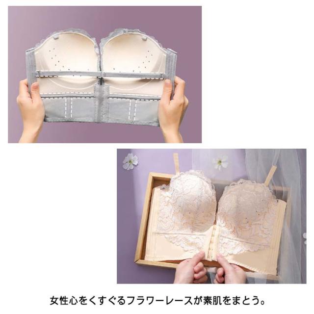 オフショルダー チューブトップブラ ずれない 2way レース ストラップレスブラ ノンワイヤー 谷間メイク レース ブラジャー 谷間メイク きれいめ 盛りブラ 盛れるブラ 脇高 花柄 フロントホック ベアトップ 落ちない インナー 送料無料
