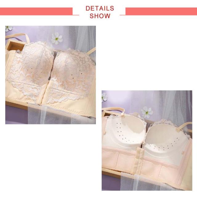 | ストラップを付けても、外しても使える2WAYタイプの盛れるブラ♪ 女性心をくすぐるフラワーレースが素肌をまとう。 肩紐なしでもずれ落ちないよう、アンダーのホールド力を高めた設計です。 やや下厚のカップで適度にボリュームアップし、程よい高さの丸いバストラインをメイク。 フロントホックで着脱もラクチン♪ | |